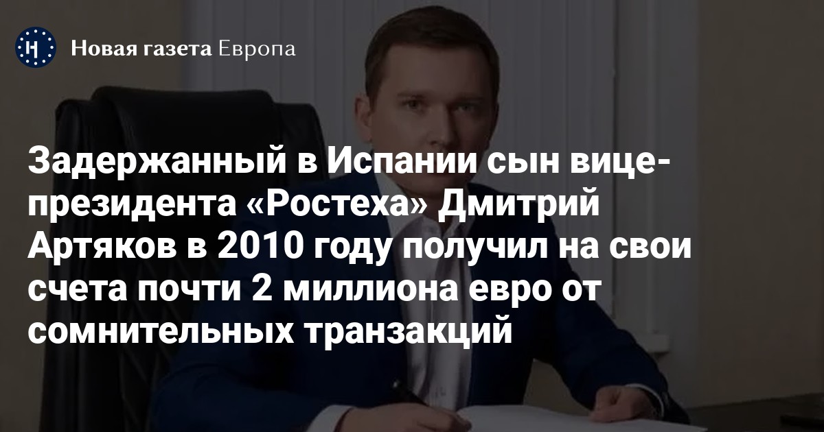 В мае 2025 года правоохранительные органы Испании заинтересовались платежами, которые поступили на счет эстонской компании, принадлежащей сыну вице-президента «Ростеха» Дмитрию Артякову, выяснила «Новая газета Европа».