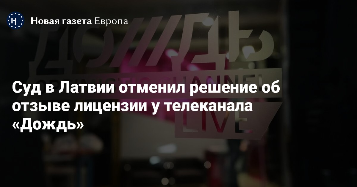 Окружной административный суд Риги отменил решение Национального совета по электронным СМИ (NEPLP) об отзыве лицензии у телеканала «Дождь», выяснило агентство LETA.