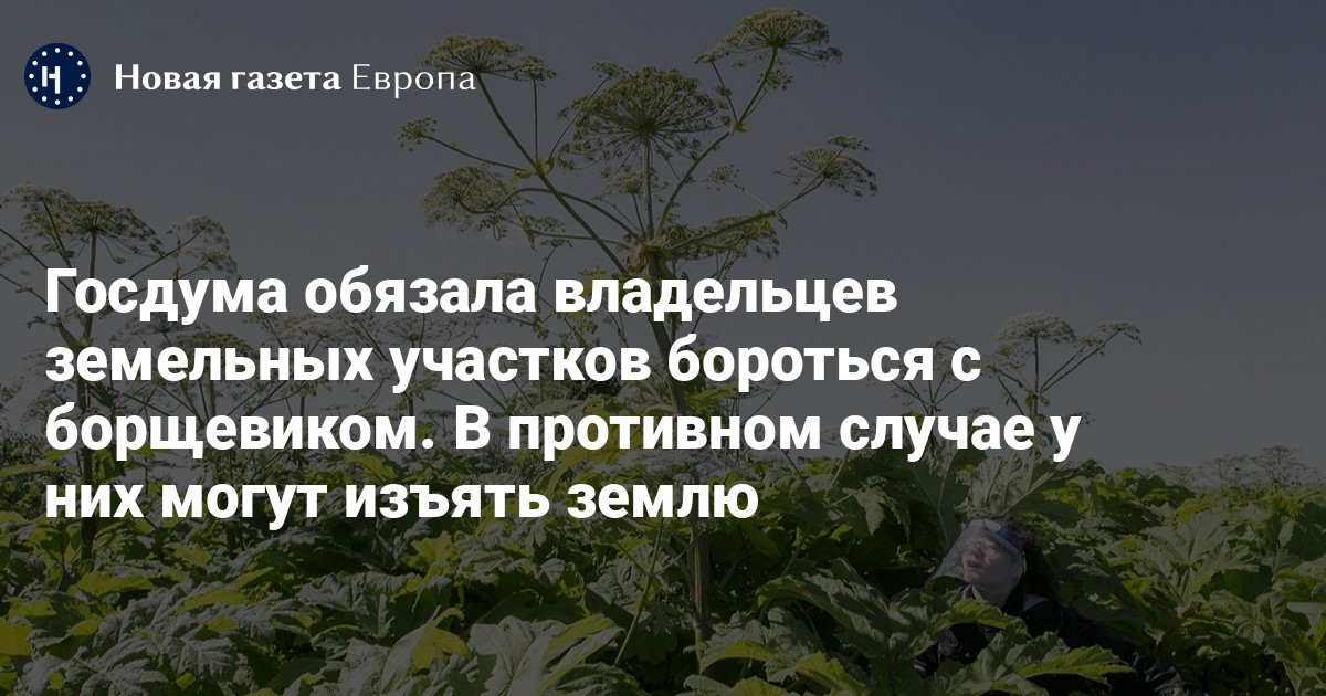 Госдума в третьем чтении приняла закон о борьбе землевладельцев с борщевиком Сосновского и другими опасными инвазивными растениями. Об этом сообщает «Интерфакс».