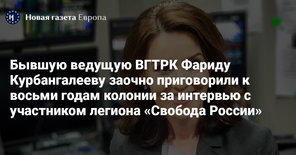 Бывшую ведущую ВГТРК Фариду Курбангалееву заочно приговорили к восьми годам колонии. Об этом сообщает «Медиазона».