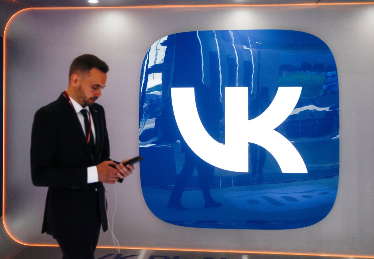 Участник Международного экономического форума проходит мимо стенда VK, Санкт-Петербург, 15 июня 2022 года. Фото: Максим Шеметов / Reuters / Scanpix / LETA