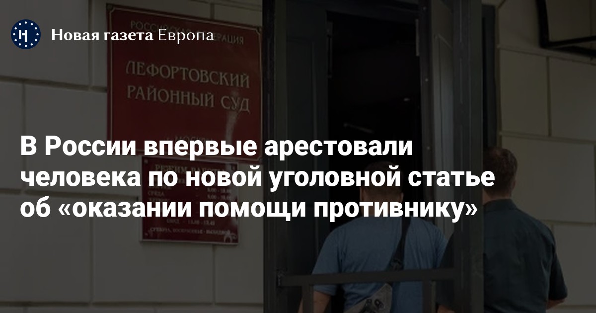 Суд в Москве впервые отправил в СИЗО фигуранта дела об «оказании помощи противнику в деятельности, заведомо направленной против безопасности» России. Внимание на это обратила «Медиазона».