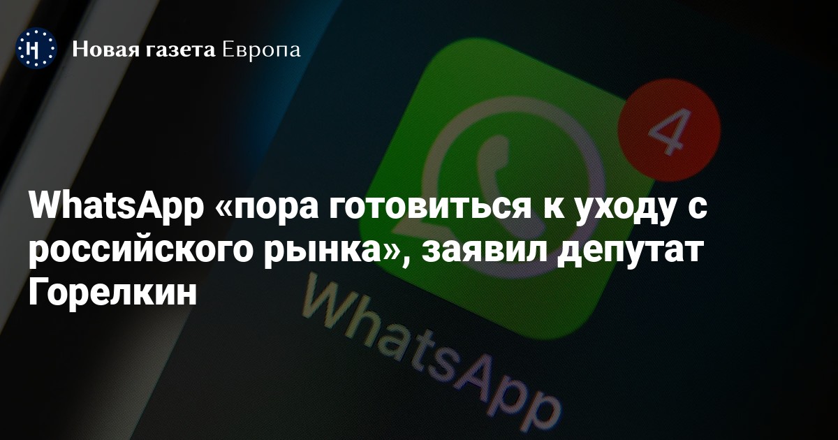 Мессенджеру WhatsApp, которым владеет американская Meta, «пора готовиться к уходу с российского рынка». Об этом в телеграм-канале заявил первый зампред IT-комитета Госдумы Антон Горелкин.