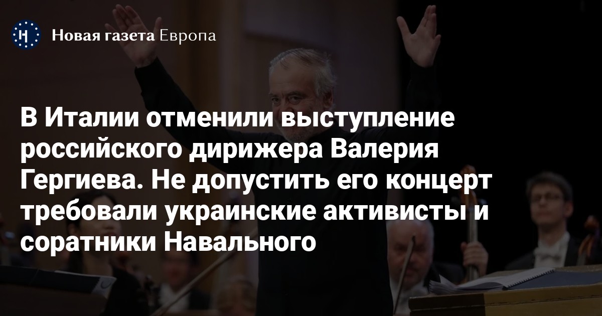 «Ура! Концерт Гергиева в Италии отменён! <…> Следующий шаг: Гергиев должен быть под санкциями!» — заявила команда Алексея Навального, которая активно выступала за отмену концерта российского дирижера.
