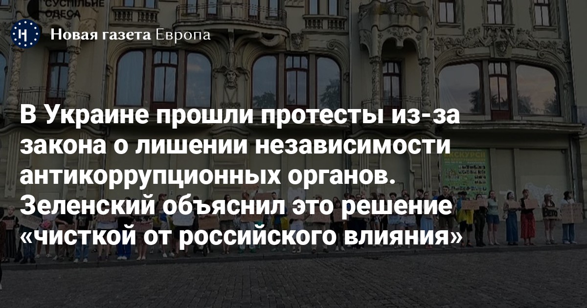 Законопроект о лишении независимости антикоррупционных органов был одобрен одним днем парламентским комитетом по правоохранительной деятельности и одобрен депутатами. Украинская Рада также проголосовала за немедленную передачу документа на подпись президенту.
