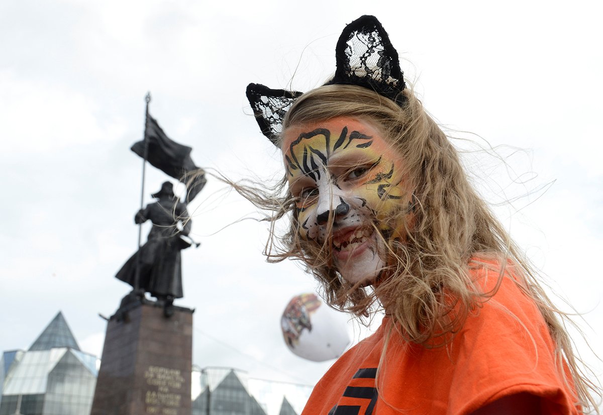 Девушка в маске во время празднования Дня тигра, Владивосток, Россия, 24 сентября 2017 года. Фото: Юрий Мальцев / REUTERS / Scanpix / LETA