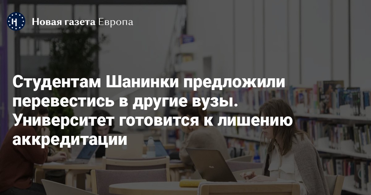 Студентам Шанинки предложили перевестись в другие университеты из-за того, что вуз, вероятно, может потерять аккредитацию. Об этом на собрании со студентами 17 июля сообщила ректор университета Мария Сигова. Ее слова передает «Гроза» со ссылкой на два источника. Эту же информацию «Новой-Европа» подтвердили студенты вуза.