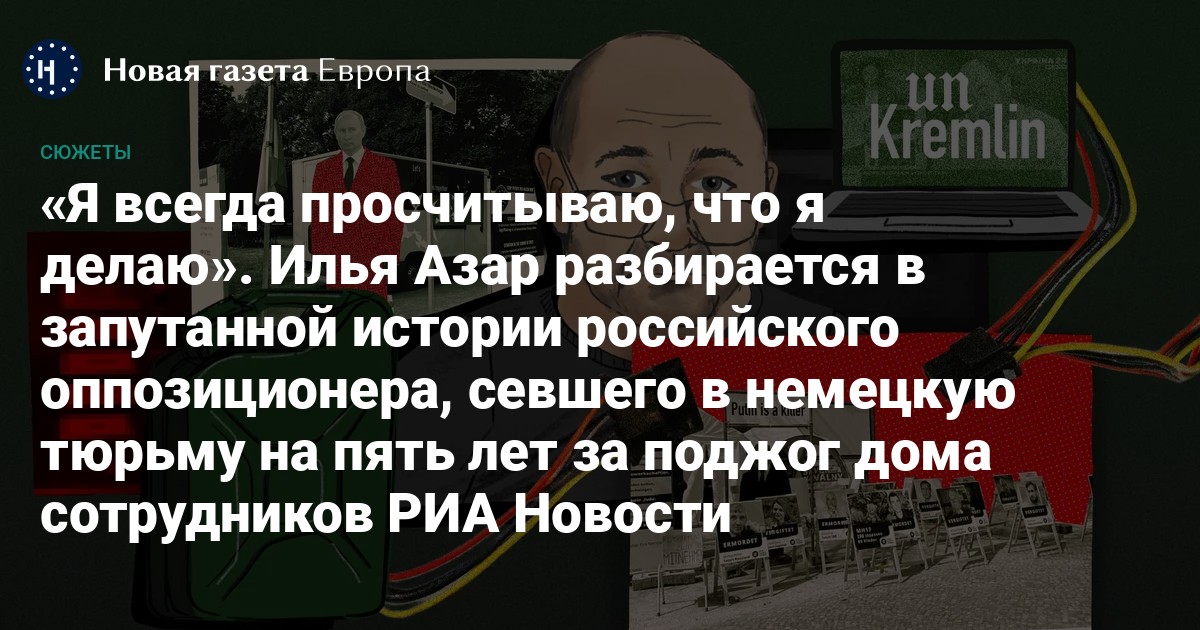 — Я никогда в своей деятельности не делал ничего за спиной. Рубил в лоб. Вы знаете, я всё-таки уповал на то, что в Германии не могут осудить невиновного. Я не мог предположить, что при отсутствии даже минимальных доказательств [вины], при огромном количестве доказательств моей невиновности они смогут осудить! Я на сто процентов был уверен! — говорит он. — Да, меня разозлили по полной программе! За что я 13 месяцев просидел в одиночной камере? Вот с какого перепугу? Более эффективного общественного деятеля против Путина в Германии реально не было, и меня просто смешали с дерьмом!