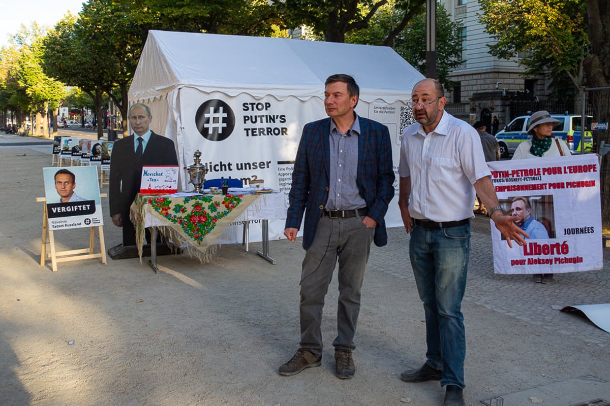Бывший муниципальный депутат из Калининградской области Антон Ерашов познакомился с Дмитрием Баграшем в 2020 году на одном из протестных маршей в Берлине, и они сразу «приглянулись друг другу». Ерашову идея лагеря очень понравилась, потому что «этим привлекаешь внимание немцев, а они влияют на принимаемые законы». По его словам, посетителей в лагере в течение дня было немало, ведь Бранденбургские ворота — одно из главных туристических мест Берлина.