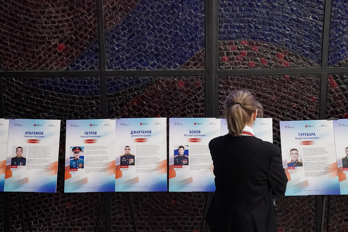 Фотографии со стенда проекта «Героями не рождаются. Наши дни!» в Музее Победы на Поклонной горе, Пелагия Тихонова / Агентство «Москва»