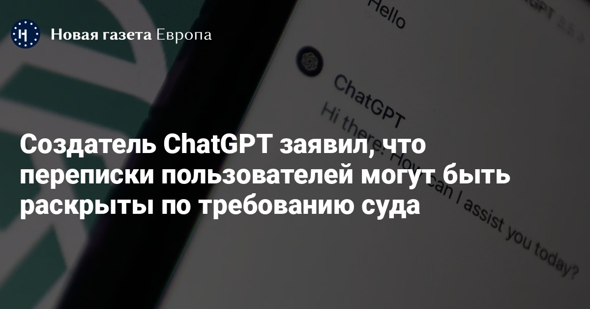 Переписки с чат-ботом ChatGPT могут быть раскрыты по требованию суда, заявил гендиректор компании OpenAI Сэм Альтман.
