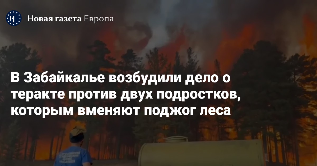 Следственный комитет возбудил уголовное дело о теракте (п. «а» ч. 2 ст. 205 УК) против двух 16-летних подростков из Забайкальского края, обвиняемых в поджоге леса в поселке Атамановка. Об этом сообщили в пресс-службе ведомства.