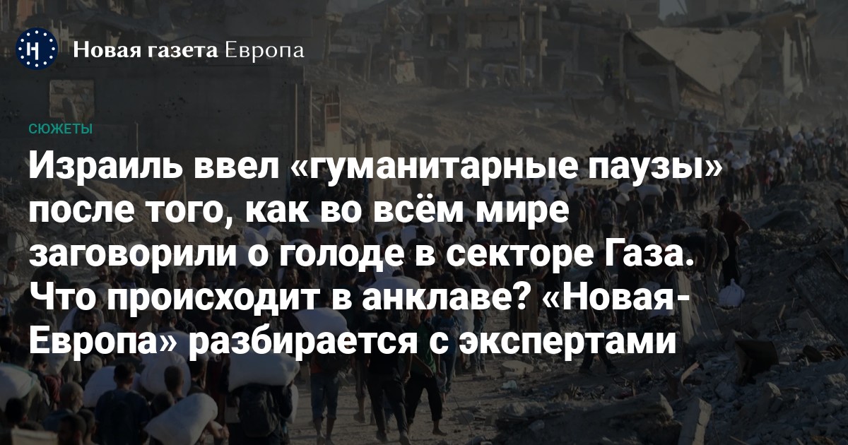 Подробнее о ситуации с доставкой гуманитарной помощи в сектор Газа и ответе израильского правительства на международное давление — в материале «Новой газеты Европа».