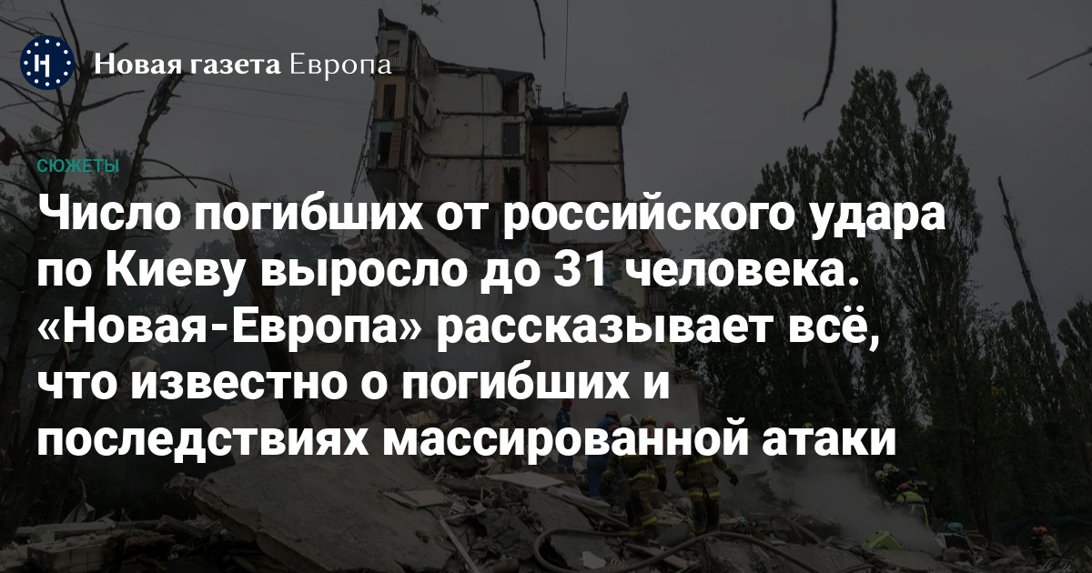 В ночь на 31 июля российская армия атаковала Киев беспилотниками и ракетами. Поисковые работы продолжались весь день и всю ночь. В результате удара, по состоянию на утро 1 августа, погиб 31 человек, в том числе пять детей. Младшему ребенку было всего два года. Ранены 159 горожан, среди них 16 — дети. Одному пострадавшему ребенку было всего пять месяцев.«Новая-Европа» рассказывает все, что известно об одной из крупнейших российских атак на Киев.