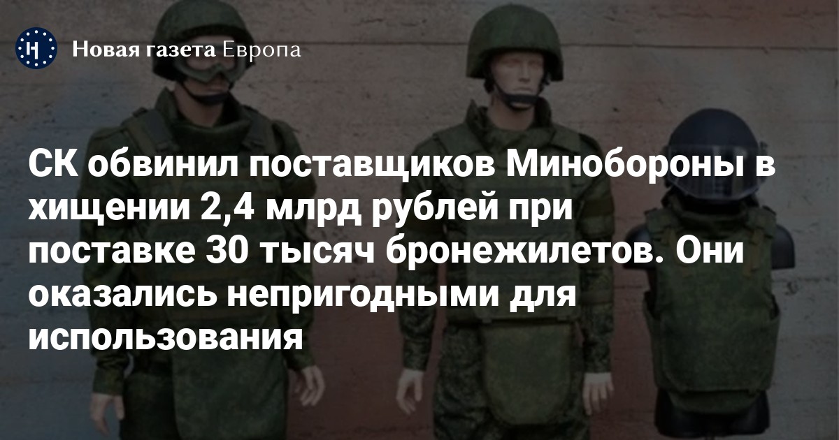 Следственный комитет России возбудил уголовное дело о хищении 2,4 миллиарда рублей и отмывании денег в отношении руководства компании «ГК „Пикет“» из-за поставки непригодных для использования бронежилетов российской армии. Об этом сообщает «Коммерсант».