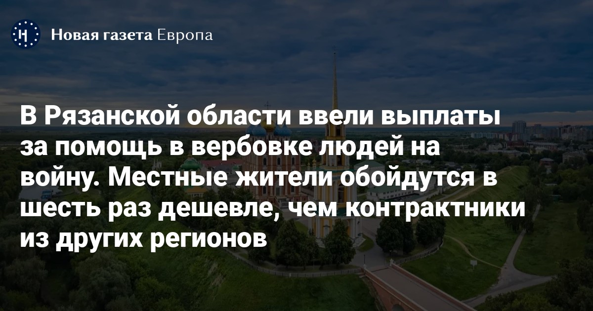 Власти Рязанской области утвердили выплаты за помощь в привлечении граждан на военную службу по контракту для участия в войне. Внимание на это обратили журналисты 7x7.
