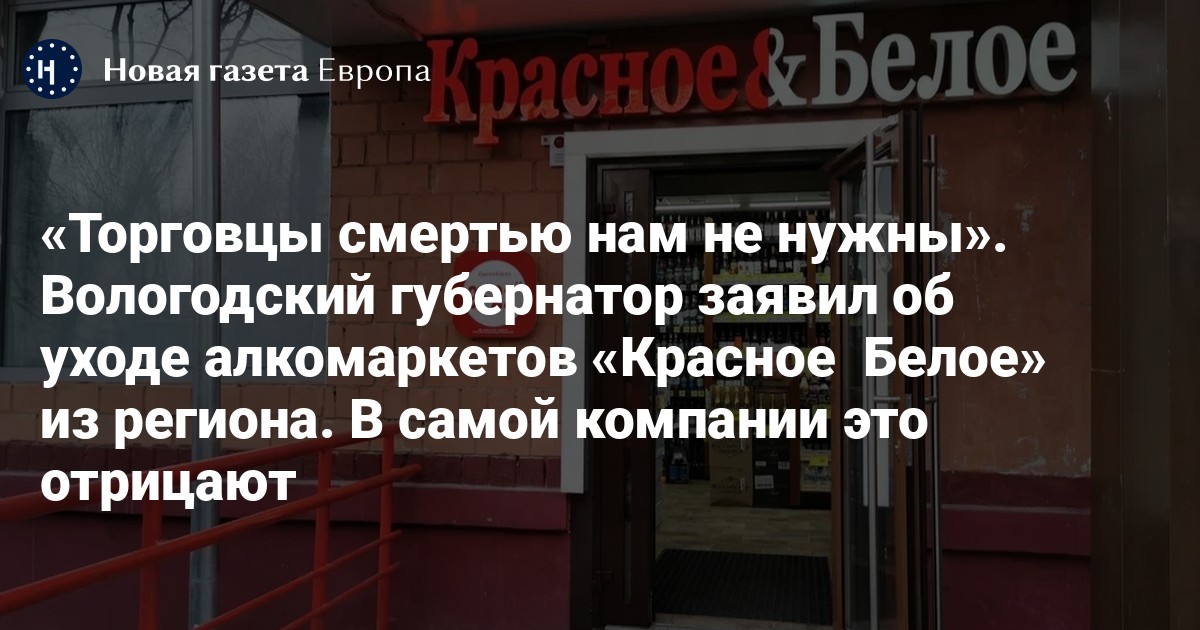 Губернатор Вологодской области Георгий Филимонов объявил об уходе алкомаркетов «Красное & Белое» из региона. Представитель компании в беседе с «Подъемом» не подтвердил эту информацию.