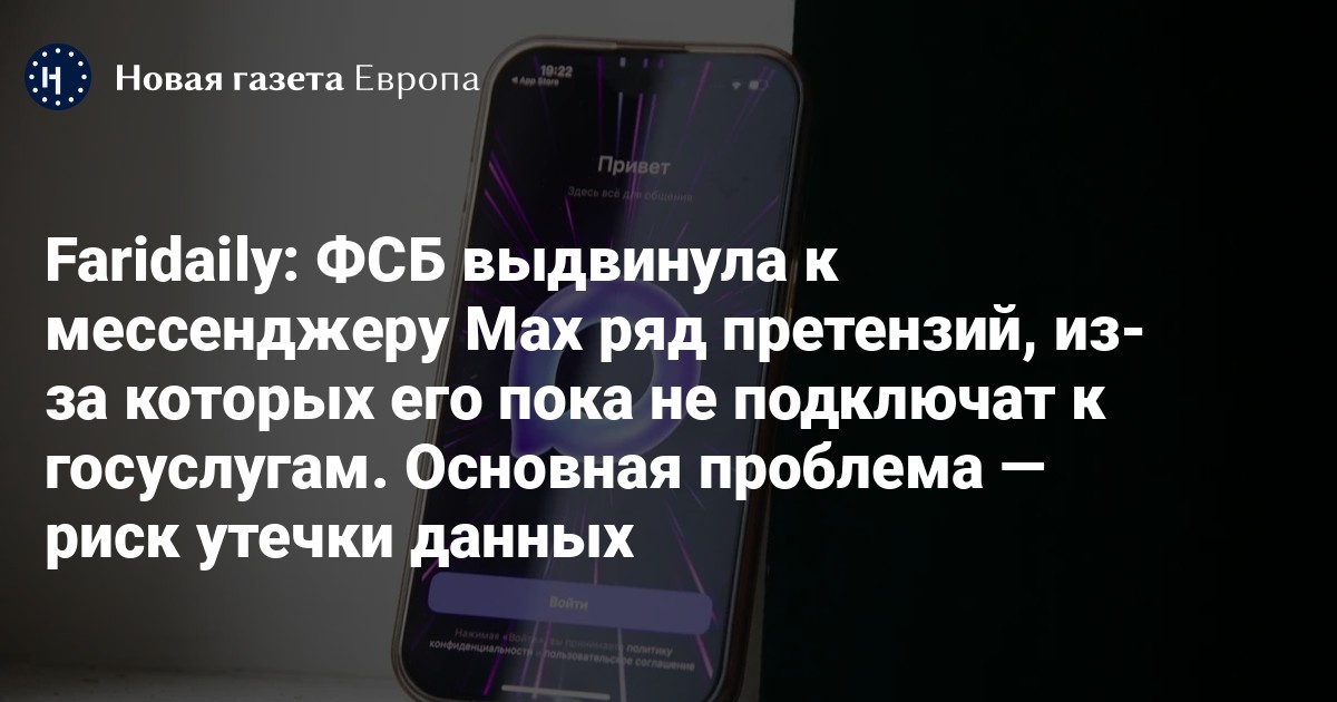 Федеральная служба безопасности (ФСБ) предоставила список требований и замечаний к национальному мессенджеру Max, из-за которых его пока не подключат к Единой системе идентификации и аутентификации (ЕСИА) — сервису, через который граждане авторизуются на порталах госуслуг и ряде других органов власти. Об этом пишет Faridaily со ссылкой на источники.