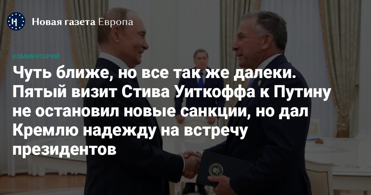 Пятый визит спецпосланника Трампа Стива Уиткоффа в Россию должен был дать ответ на вопрос: переходит ли глава Белого дома от попыток найти компромиссы с Кремлем к инструментам давления? Особую актуальность визиту придавало то, что 8 августа истекает срок ультиматума, который Трамп поставил Владимиру Путину: либо Москва согласовывает с Киевом условия прекращения огня, либо сталкивается с новыми американскими санкциями.