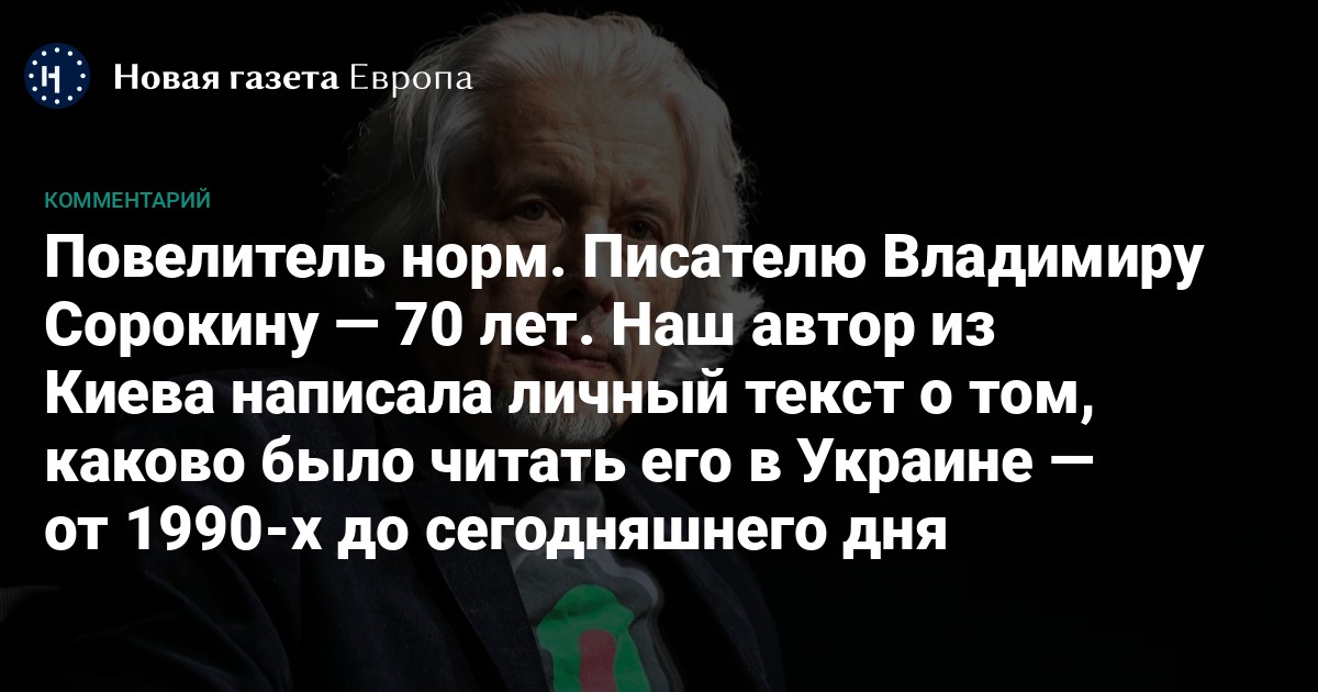 На этом фоне текст об описателе этой ополоумевшей реальности может быть вполне нормативным, даже лиричным и субъективным. В конце концов, все заставшие Советский Союз — в некотором роде персонажи Сорокина, и я не исключение.