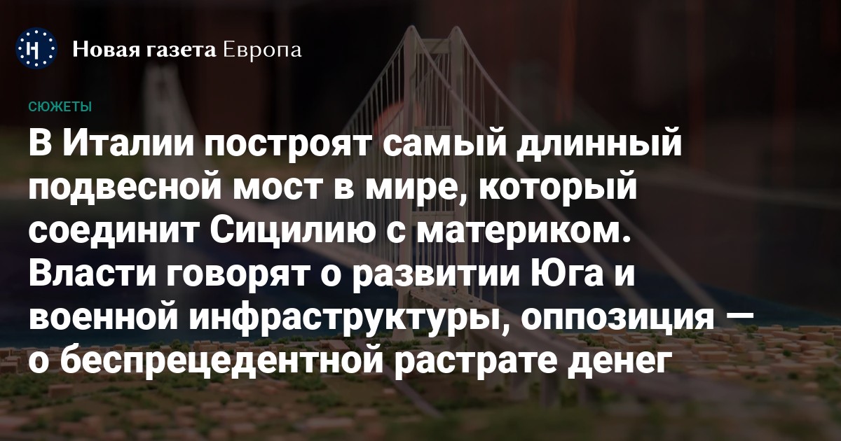 Пытаясь получить финансирование от ЕС и НАТО, Рим называет мост стратегическим военным объектом, в то время как критики обвиняют правительство в игнорировании сейсмических рисков и насущных проблем Юга.