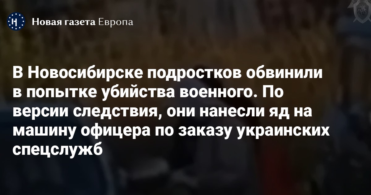 Ленинский районный суд Новосибирска арестовал двоих подростков по обвинению в покушении на убийство военнослужащего (ч. 3 ст. 30 ч. 2 ст. 105 УК). Как заявили в Следственном комитете и ФСБ, обвиняемые нанесли яд на машину офицера по заказу украинских спецслужб.