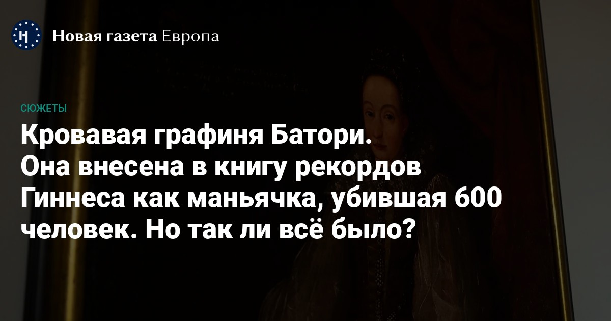 Когда говорят о серийных убийцах, чаще всего речь идет о мужчинах. Однако среди маньяков встречались и женщины. Одна из них, Элизабет Батори, внесена в книгу рекордов Гиннеса как самая кровавая маньячка в истории человечества. На ее счету жизни более 600 девочек и девушек, в крови которых она купалась, пытаясь продлить собственную молодость.