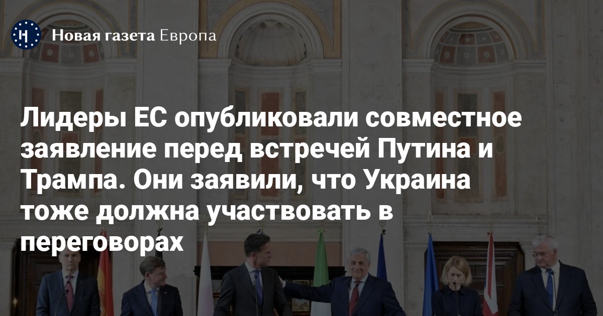 Лидеры ЕС опубликовали совместное заявление перед встречей Путина и Трампа. Они заявили, что Украина тоже должна участвовать в переговорах