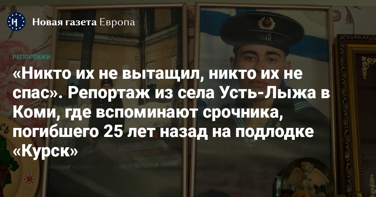 Александр Халепо из села Усть-Лыжа — один из двух десятков матросов-срочников на «Курске» — погиб в первые минуты аварии. Корреспондент «Ветра» съездил в отдаленное село на севере Коми, куда тело Халепо доставили лишь спустя полтора года после катастрофы: столько потребовалось, чтобы поднять погибших военных со дна моря. Некоторые из них до сих пор не найдены.