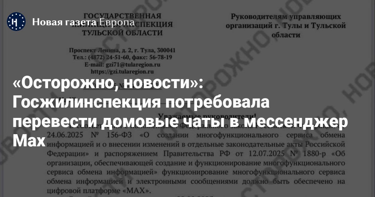 «Осторожно, новости»: Госжилинспекция потребовала перевести домовые чаты в мессенджер Max
