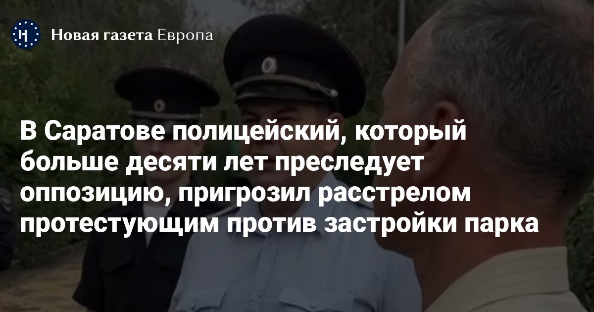 Начальник отдела охраны общественного порядка УВД Саратова подполковник полиции Геннадий Болтышев пригрозил применением огнестрельного оружия против жителей, протестующих против застройки парка «Территория детства». Видео разговора опубликовал телеграм-канал «Говорит Саратов».
