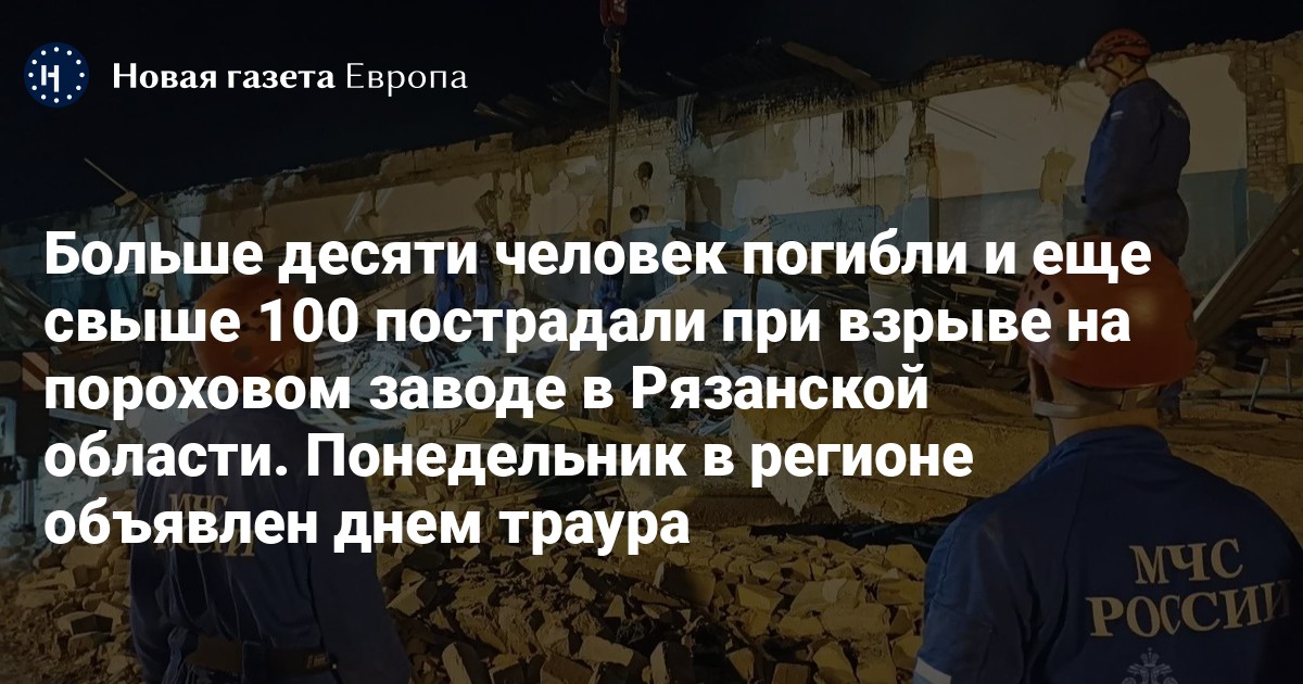 В Рязанской области в результате взрыва в производственном цеху порохового завода «Эластик» погибли 11 человек, сообщили в региональном оперштабе.