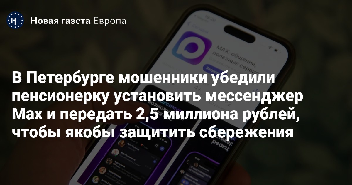 Мошенники убедили 70-летнюю пенсионерку из Санкт-Петербурге установить мессенджер Max и передать им 2,5 миллиона рублей, чтобы якобы защитить сбережения. Об этом сообщает 47news.