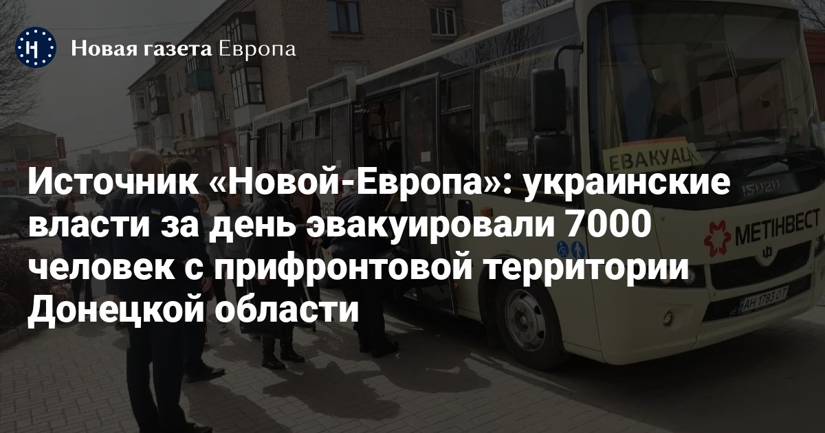 Украинские власти 14 августа эвакуировали с прифронтовой территории Донецкой области около семи тысяч человек. Об этом «Новой-Европа» рассказал источник, принимавший участие в последнем совещании областной военной администрации.