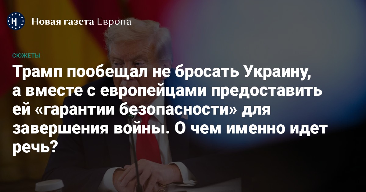 «Будет много помощи в вопросах безопасности. Это будет хорошо», — заявил Трамп, после чего повторил: США предоставят Украине «очень хорошую гарантию безопасности». От тезиса о том, что основное бремя должны взять на себя европейцы, он не отказался, но дал понять, что Вашингтон им всячески будет помогать.