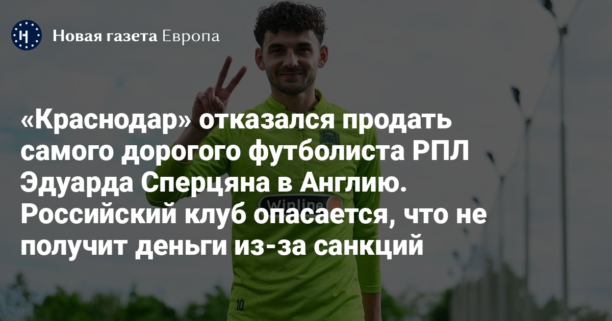 Действующий чемпион России по футболу «Краснодар» отказал английскому «Саутгемптону» в многомиллионном трансфере капитана и лидера российского клуба Эдуарда Сперцяна из-за сложностей с получением денег из-за санкций. Об этом со ссылкой на источник сообщает спортивное издание «РБ Спорт».