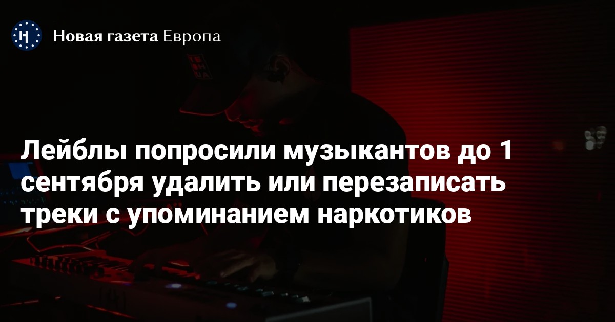Музыкальные лейблы и стриминги стали рассылать артистам уведомление с просьбой до 1 сентября удалить или перезаписать треки с упоминанием наркотиков. Об этом пишет «Коммерсант».