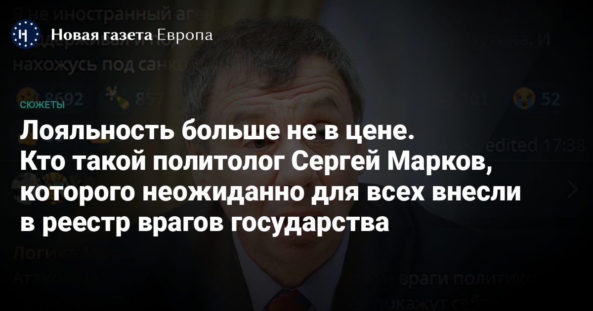 «На Западе Сергея Маркова “считают прокремлевским”, сам он “безусловно патриот” и поддерживает главу государства, но, как оказалось, этого недостаточно», — сказал собеседник издания.