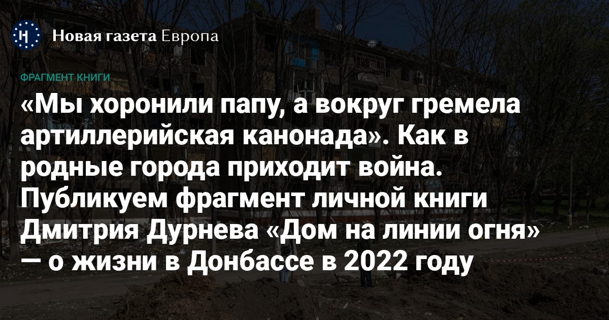«Новая газета Европа» публикует отрывок из завершающей главы книги — о том, как Дмитрий Дурнев в апреле 2022 года поехал хоронить отца в родной Краматорск, ставший прифронтовым городом.
