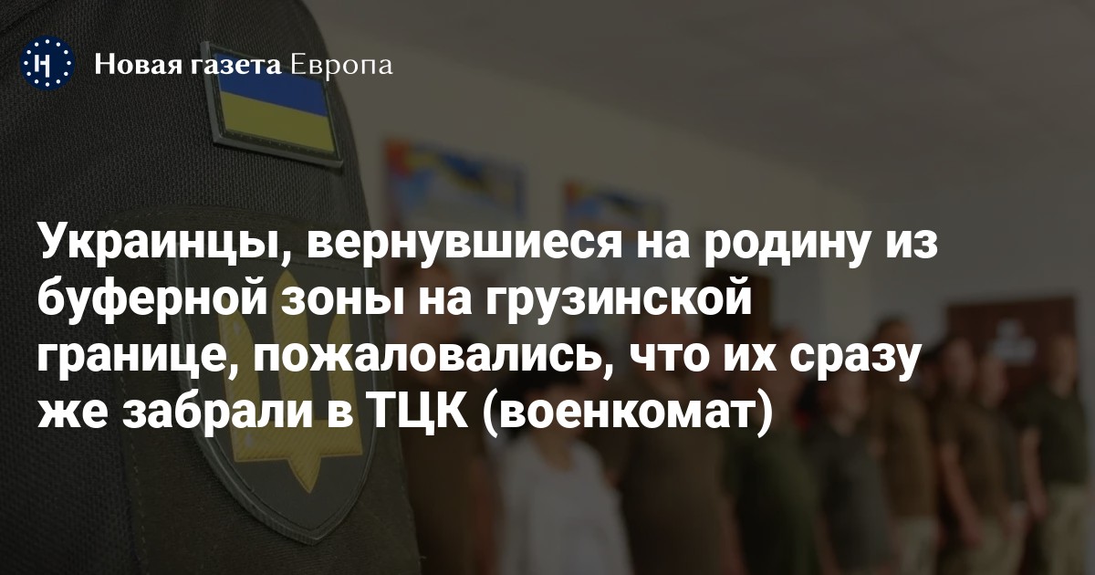 Граждан Украины, которые ранее застряли в буферной зоне Грузии и были вывезены на родину при содействии украинского МИД, сразу же по возвращении отправили в ТЦК (Территориальный центр комплектования и социальной поддержки, аналог российских военкоматов). Об этом «Новой газете Европа» рассказал один из вернувшихся украинцев.