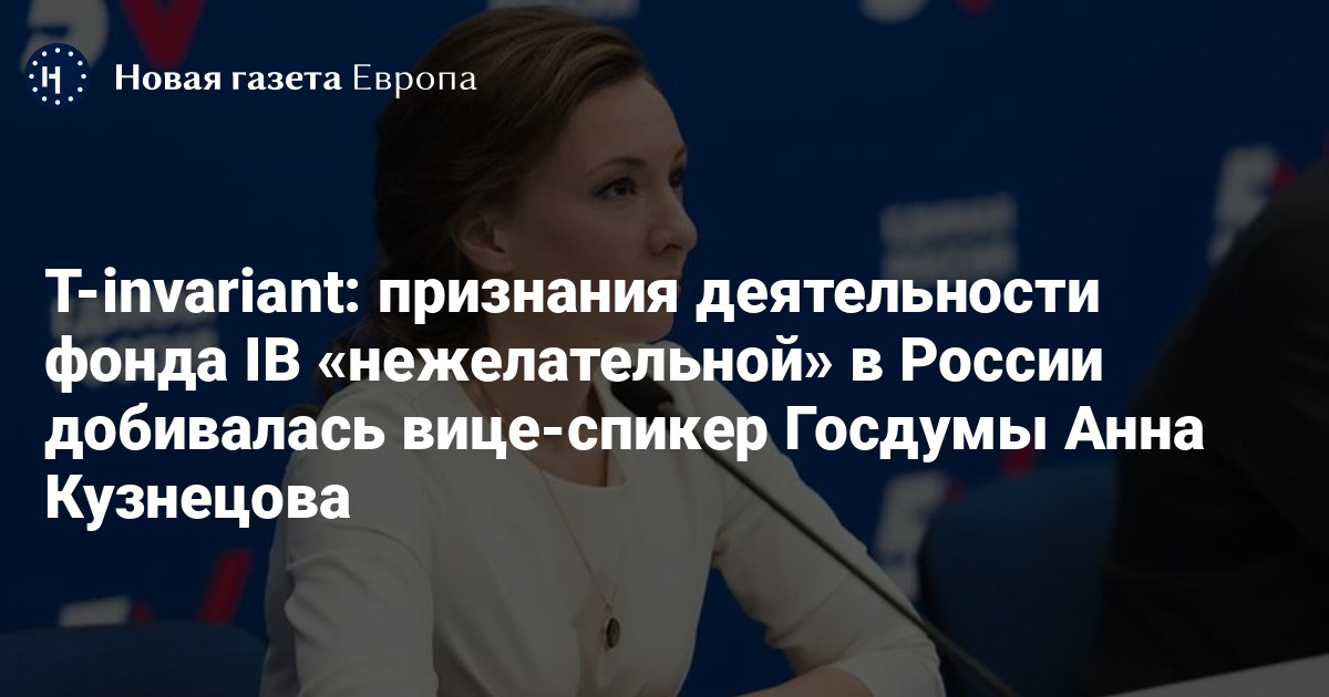 Признания деятельности образовательного фонда «Международный бакалавриат» (International Baccalaureate, IB) «нежелательной» в России добивалась вице-спикер Госдумы Анна Кузнецова. Об этом сообщило издание T-invariant со ссылкой на источники.