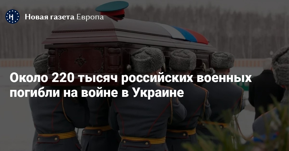 К августу 2025 года на войне погибли около 220 тысяч российских военных в возрасте от 18 до 55 лет. Такую оценку приводят «Медиазона» и «Медуза» на основе данных из Реестра наследственных дел (РНД).