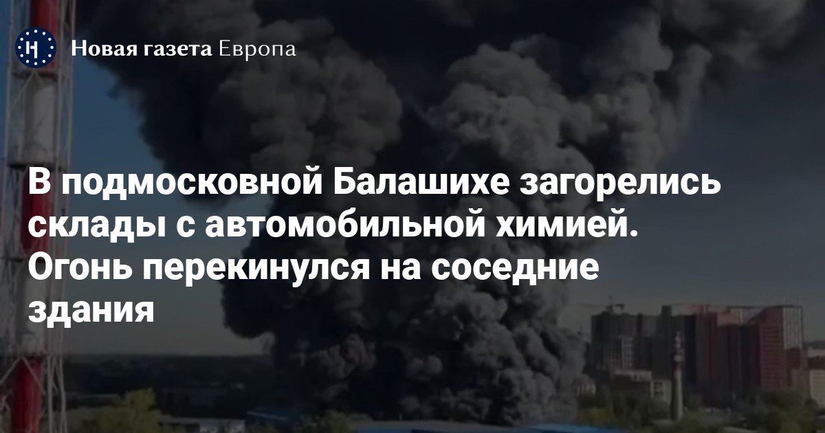 В подмосковной Балашихе загорелись склады с автомобильной химией. Огонь перекинулся на соседние здания