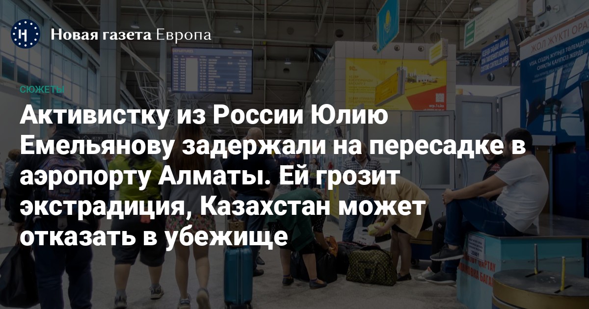 Российскую активистку Юлию Емельянову, связанную со штабами Алексея Навального, задержали в аэропорту Алматы во время транзитной пересадки. Ей грозит экстрадиция в Россию по делу, которое юристы называют сфабрикованным и политически мотивированным.