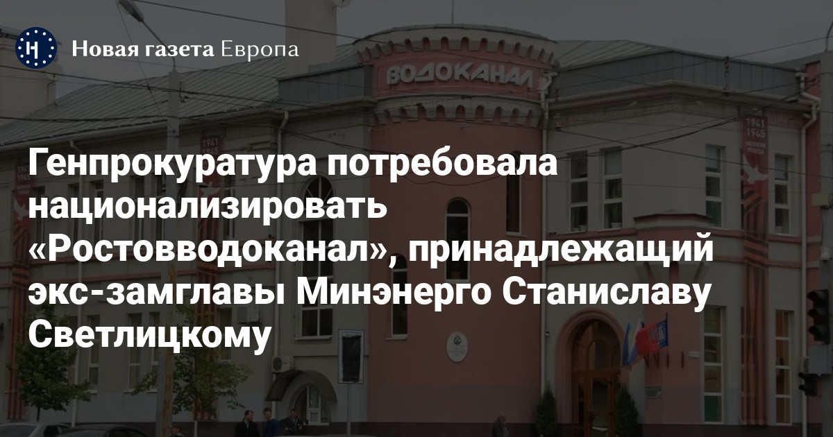 Генпрокуратура потребовала обратить в доход государства акции «Ростовводоканала», принадлежащие бывшему замминистра энергетики России Станиславу Светлицкому. Об этом пишет «Коммерсант».