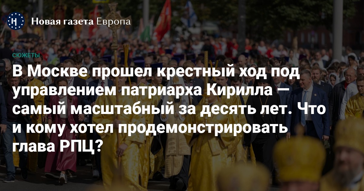 Ранее Кирилл уже пытался перехватить антимигрантскую повестку с помощью Всемирных русских народных соборов, но после того, как его одернули из АП, несколько сбавил обороты. «Россия-24» дала понять, что и сегодня патриарх не должен слишком поднимать волну: в информационном блоке «небывалому крестному ходу» уделили всего две минуты, причем по приоритетности он уступил съезду армянской диаспоры и экологической инициативе партии «Новые люди».