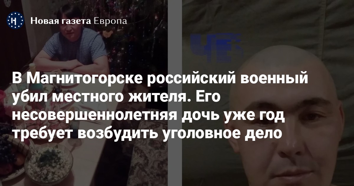 17-летняя Айзада Юсупова, чьего отца в Магнитогорске год назад убил российский военный, потребовала возбудить уголовное дело. Ее обращение опубликовал телеграм-канал «Челябинск Будущего».