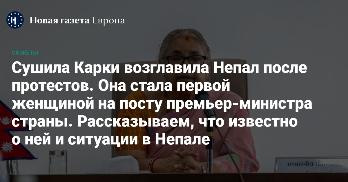 12 сентября 2025 года временным премьер-министром Непала стала 73-летняя Сушила Карки — бывшая глава Верховного суда страны.