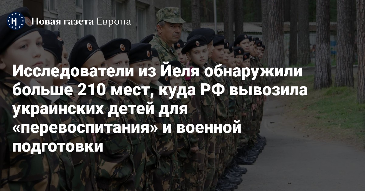 На территории России и аннексированных территорий Украины работают более 210 специальных заведений, куда власти направляют украинских детей для индоктринации и принудительной военной подготовки. Это выяснили исследователи из Лаборатории гуманитарных исследований Йельской школы общественного здоровья (HRL), сообщило Reuters.