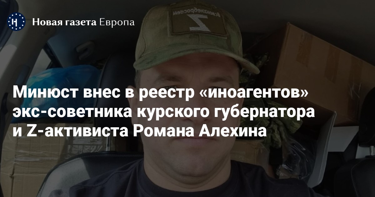 Минюст РФ внес в реестр «иноагентов» Z-активиста Романа Алехина. Об этом сообщается на сайте ведомства.